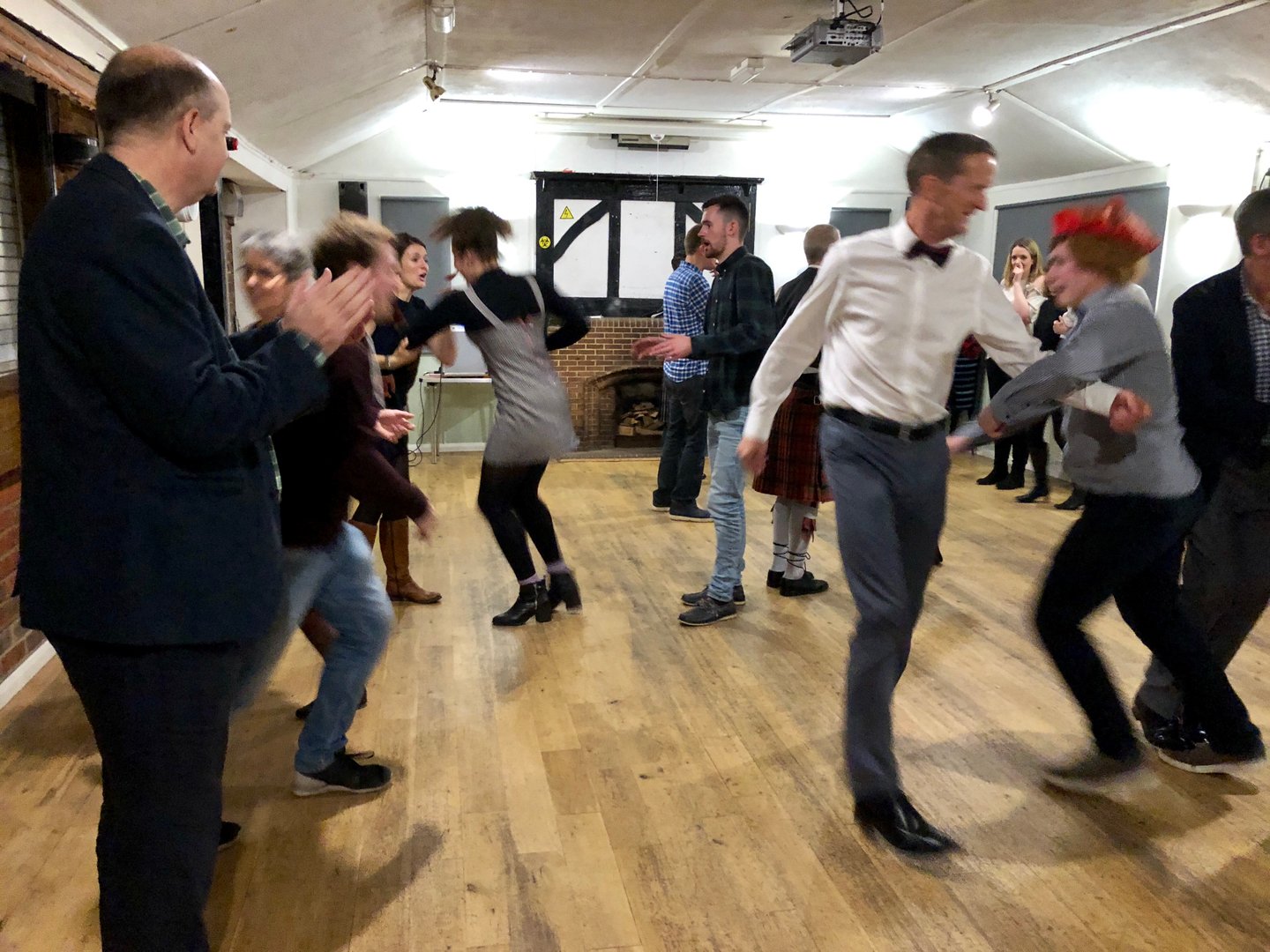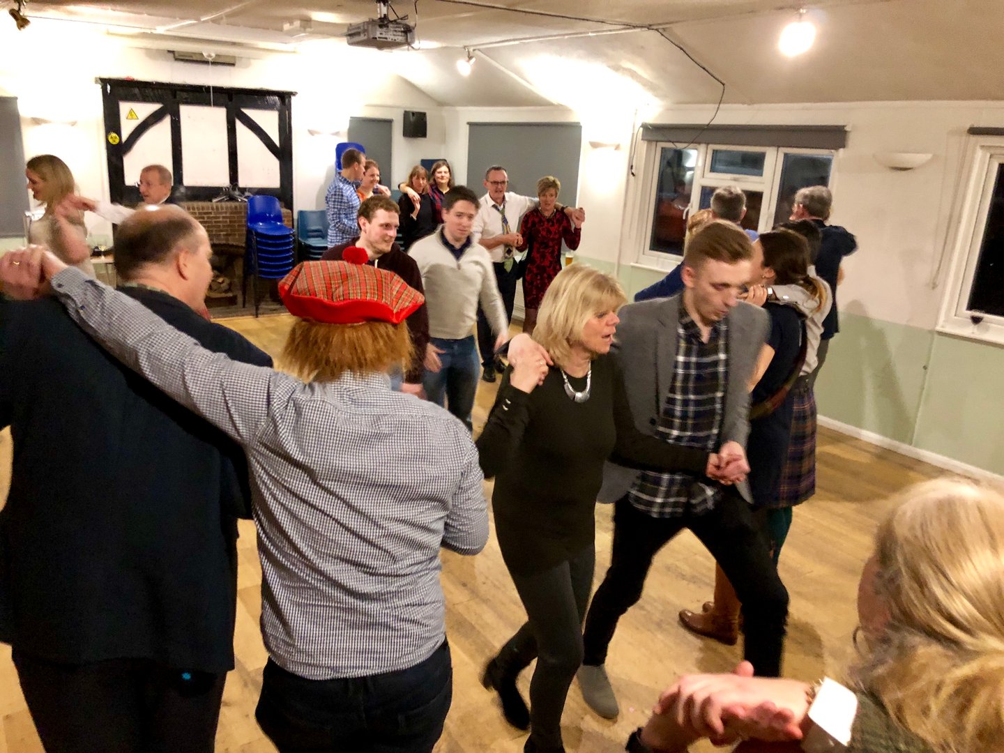 After the entrance of the Haggis, and bagpiper, a traditional 3 course menu meal was served, including Haggis, Neeps and Tatties. Alison Holton cut the Haggis and everyone toasted with their free tot of whiskey.
